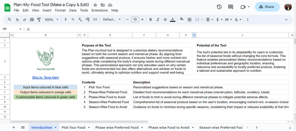 I have written about this tool on my blog as well. You can read it here: https://medium.com/@contactthefintechpm/meal-planning-tool-for-corporate-girlies-based-on-season-and-menstrual-cycle-9306251e2871